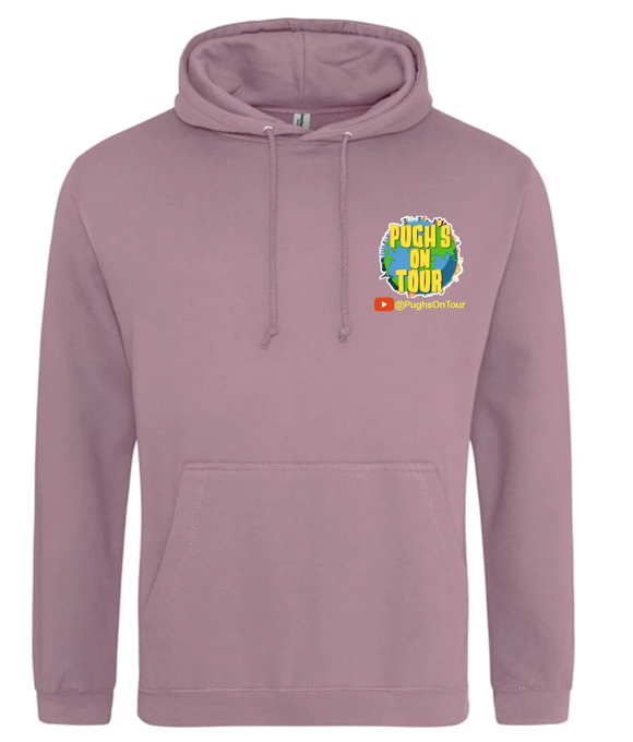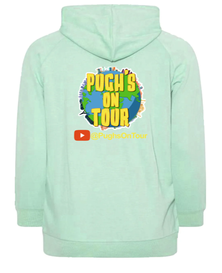 This heavy cotton t-shirt comes with the Pugh’s on Tour Logo printed on the Left Breast and a larger logo printed on the back.